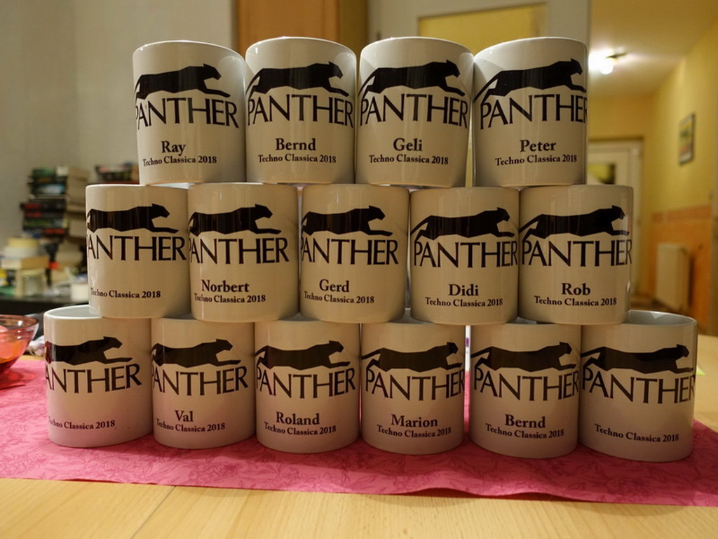Das Thema war der Brexit. In Wales und England schneite es. Pete hat den Schnee getrotzt und einen Panther gebracht. Da jedes Jahr die Helfer eine Tasse geschenkt bekommen, sind die mittlerweile ein Sammlerstück der Panthergemeinde.